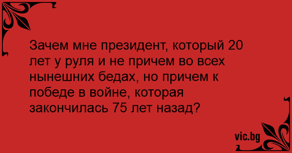Зачем мне президент, который 20 лет у руля и не причем во всех нынешних бедах, но причем к победе в войне, которая закончилась 75 лет назад?
