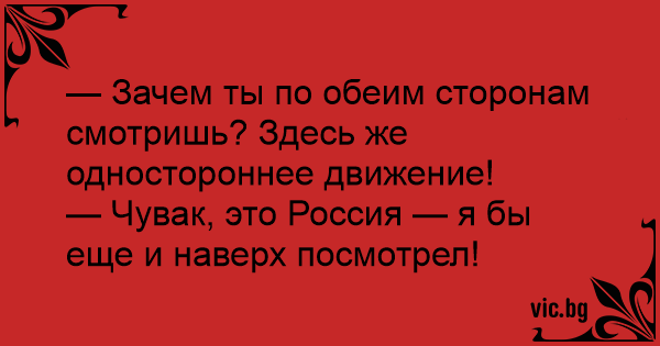 - Защо се оглеждаш на двете страни, улицата е еднопосочна?