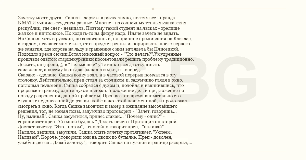 Наливай". Короче, уговорили они на двоих по бутылке. Преп - доволен,