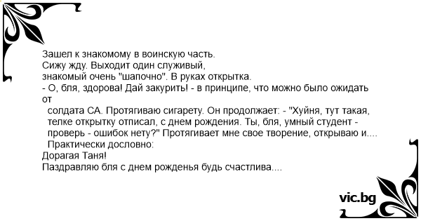 телке открытку отписал, с днем рождения. Ты, бля, умный студент -