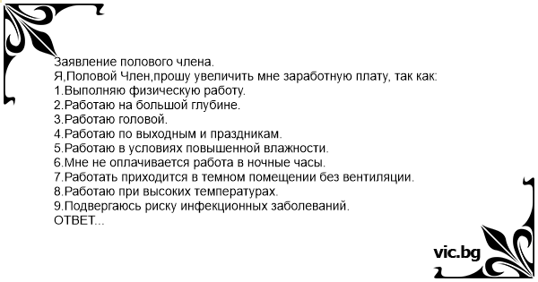 Я,Половой Члeн,прошу увеличить мне заработную плату, так как: