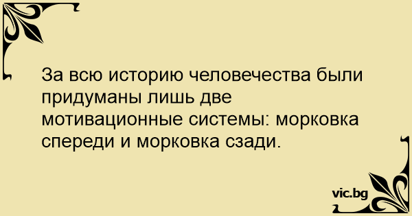 За всю историю человечества были придуманы лишь две мотивационные системы: морковка спереди и морковка сзади.