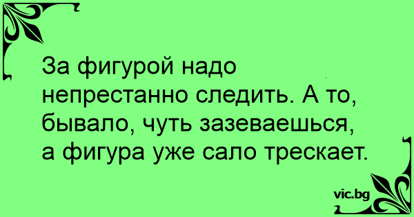 За фигурой надо непрестанно следить. А то, бывало, чуть зазеваешься, а фигура уже сало трескает.