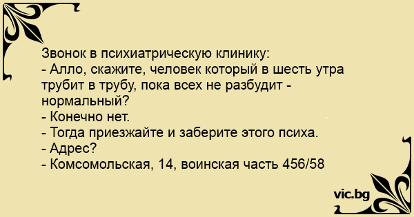 - Алло, скажите, человек который в шесть утра трубит в трубу, пока всех не разбудит - нормальный?