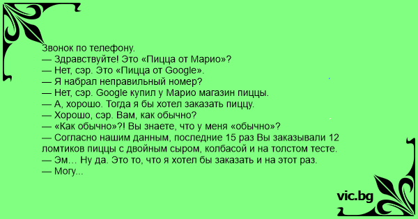 — Здравствуйте! Это «Пицца от Марио»?