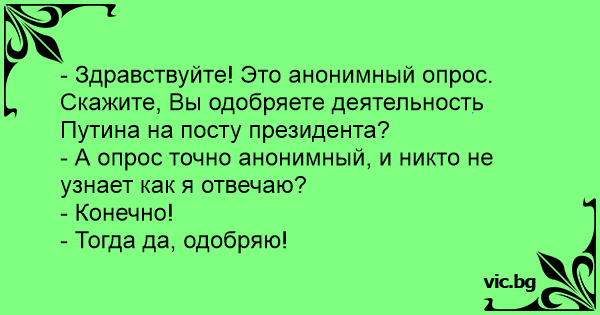 - Здравствуйте! Это анонимный опрос. Скажите, Вы одобряете деятельность Путина на посту президента?