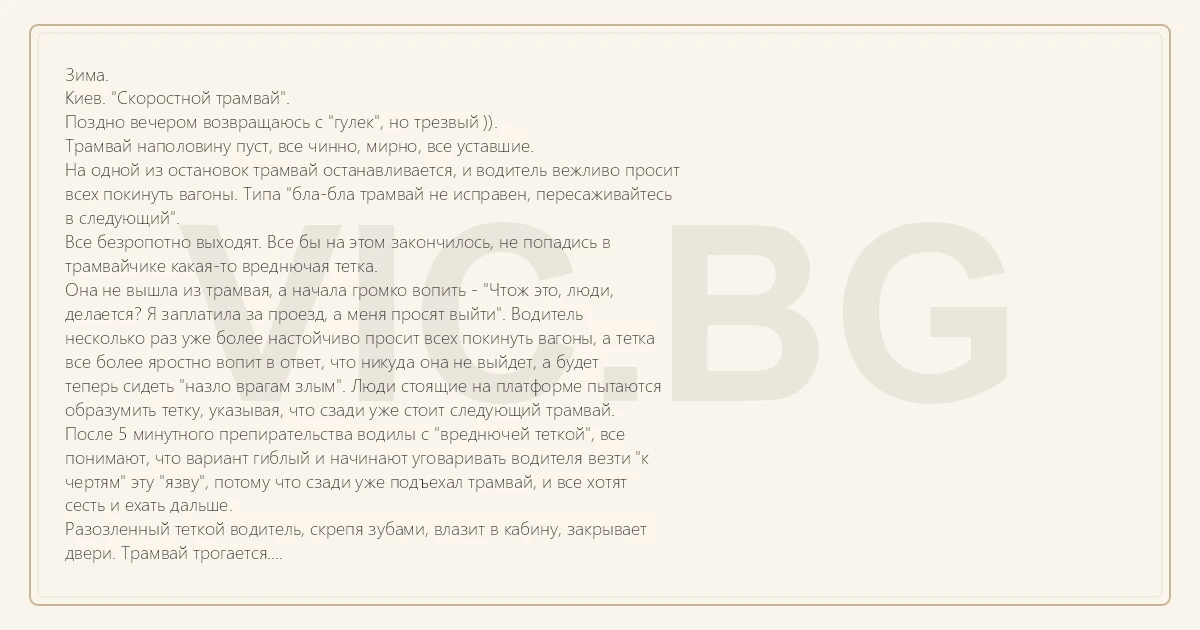После 5 минутного препирательства водилы с "вреднючей теткой", все