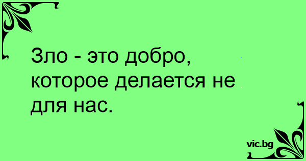 Зло - это добро, которое делается не для нас.