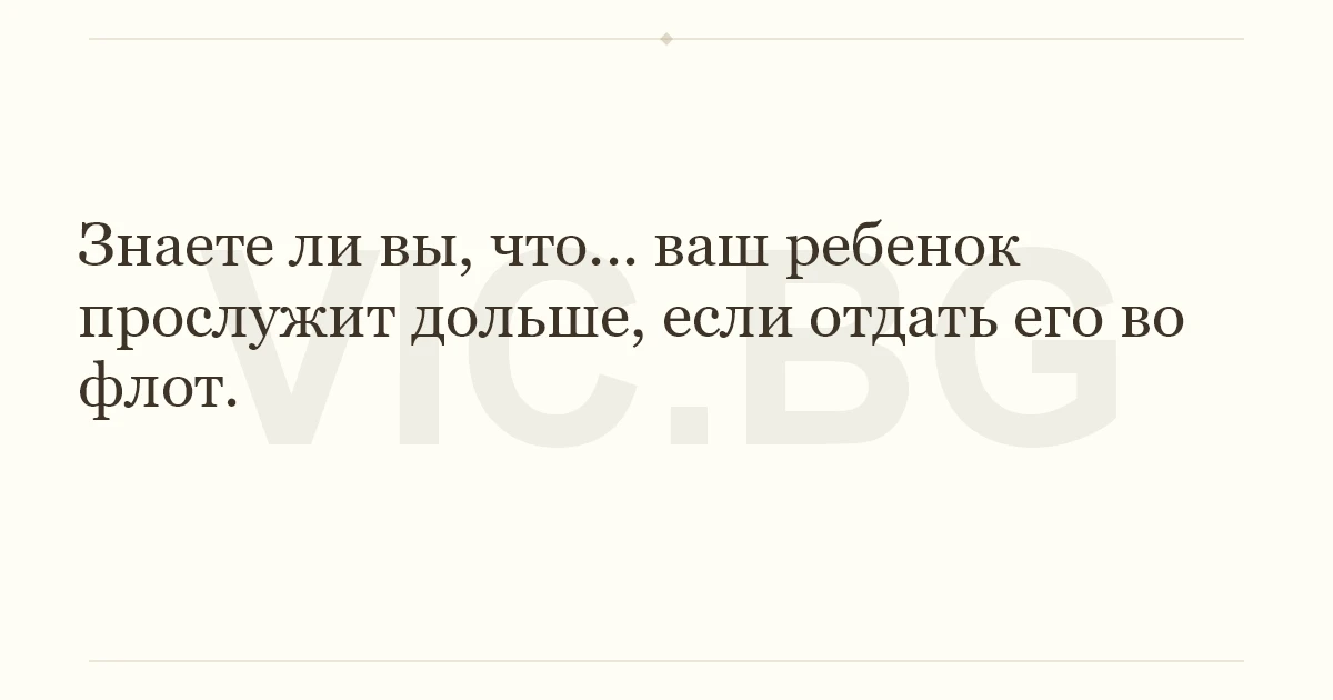 Знаете ли вы, что... ваш ребенок прослужит дольше, если отдать его во флот.