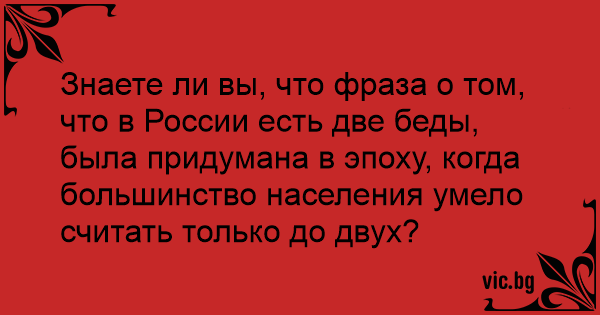 Знаете ли вы, что фраза о том, что в России есть две беды, была придумана в эпоху, когда большинство населения умело считать только до двух?
