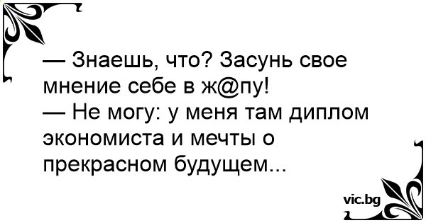 — Знаешь, что? Засунь свое мнение себе в ж@пу!
