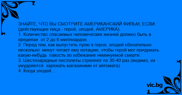ЗНАЙТЕ, ЧТО ВЫ СМОТРИТЕ АМЕРИКАНСКИЙ ФИЛЬМ, ЕСЛИ: (действующие лица - герой, злодей, АМЕРИКА).