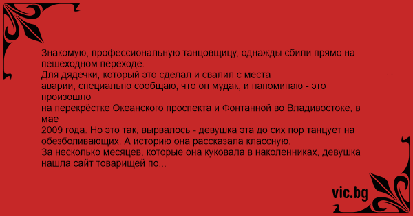 Знакомую, профессиональную танцовщицу, однажды сбили прямо на