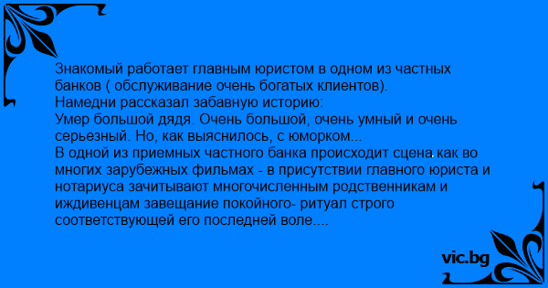 P.S. Приятель работает на этой должности уже 10 лет, но такого ржача при чтении завещания он не слышал ни разу.