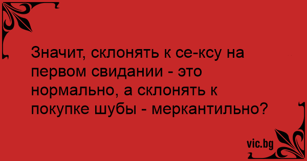 Значит, склонять к сексу на первом свидании - это нормально, а склонять к покупке шубы - меркантильно?