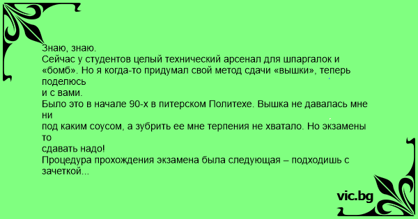 Секрет своих «бомб» я открыл одногруппникам только курсе на третьем,