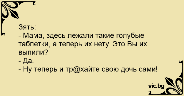 - Мама, здесь лежали такие голубые таблетки, а теперь их нету. Это Вы их выпили?