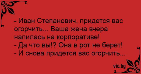 - Иван Степанович, придется вас огорчить... Ваша жена вчера напилась на корпоративе!