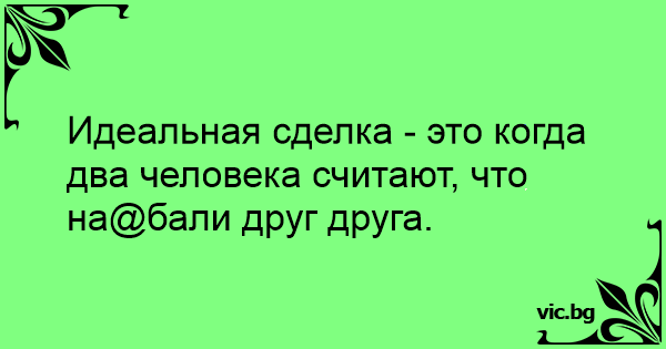 Идеальная сделка - это когда два человека считают, что на@бали друг друга.<br />