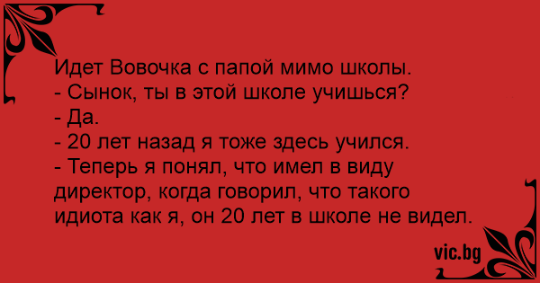 Идет Вовочка с папой мимо школы.