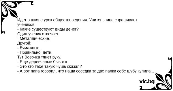 Идет в школе урок обществоведения. Учительница спрашивает учеников: