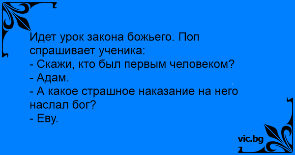 Идет урок закона божьего. Поп спрашивает ученика: