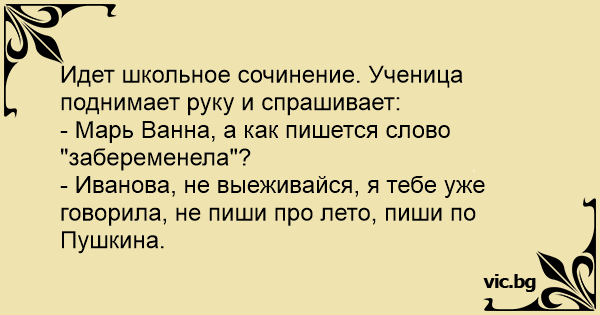 - Иванова, не выеживайся, я тебе уже говорила, не пиши про лето, пиши по Пушкина.