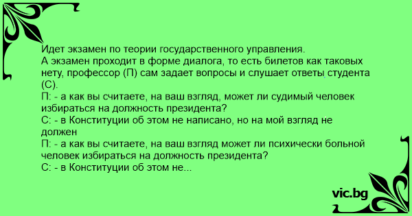 Идет экзамен по теории государственного управления.
