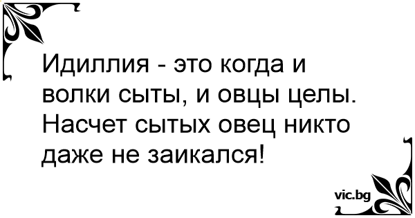 Идиллия - это когда и волки сыты, и овцы целы. Насчет сытых овец никто даже не заикался!