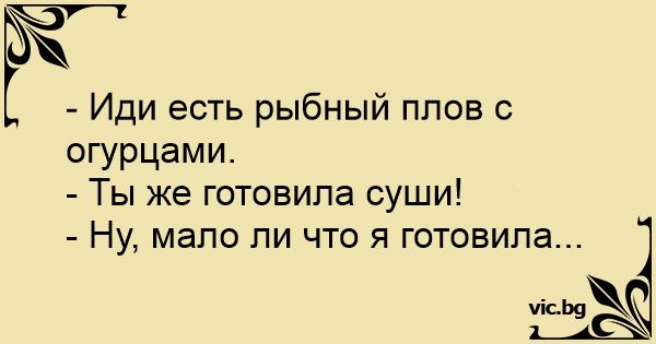 - Иди есть рыбный плов с огурцами.