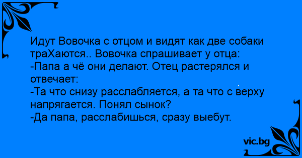 Идут Вовочка с отцом и видят как две собаки тpaXаются.. Вовочка спрашивает у отца: