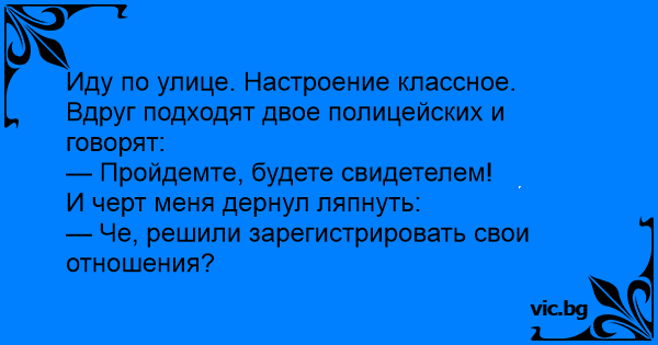 Иду по улице. Настроение классное. Вдруг подходят двое полицейских и говорят: