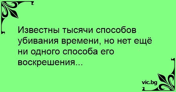 Известны тысячи способов убивания времени, но нет ещё ни одного способа его воскрешения...
