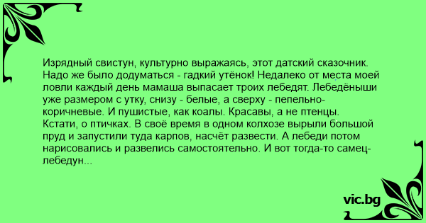 Изрядный свистун, культурно выражаясь, этот датский сказочник.