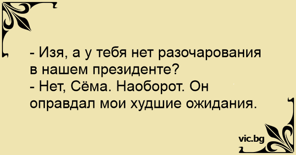 - Изя, а у тебя нет разочарования в нашем президенте?