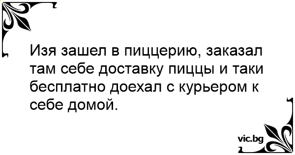 Изя зашел в пиццерию, заказал там себе доставку пиццы и таки бесплатно доехал с курьером к себе домой.