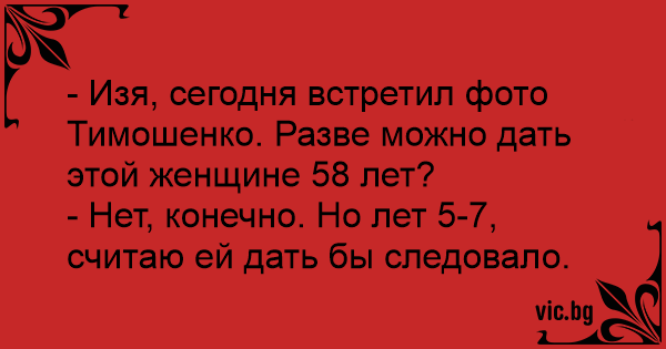 - Изя, сегодня встретил фото Тимошенко. Разве можно дать этой женщине 58 лет?