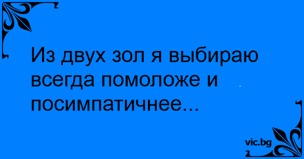 Из двух зол я выбираю всегда помоложе и посимпатичнее...