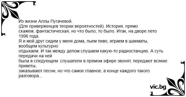 отдыхаем. И так между делом слушаем какую-то радиостанцию. А суть передачи на ней