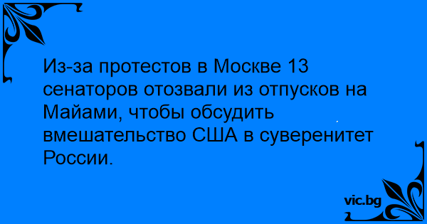 Из-за протестов в Москве 13 сенаторов отозвали из отпусков на Майами, чтобы обсудить вмешательство США в суверенитет России.