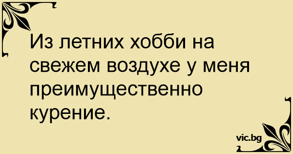 Из летних хобби на свежем воздухе у меня преимущественно курение.