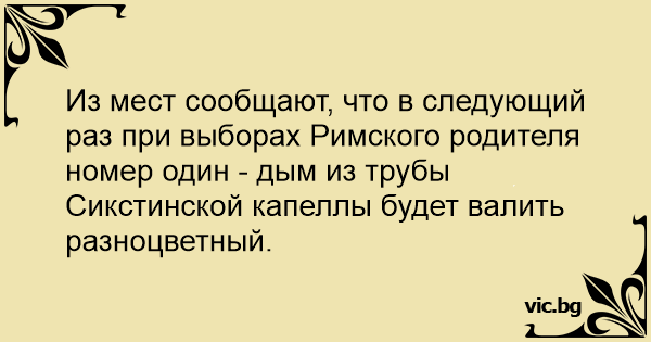 Из мест сообщают, что в следующий раз при выборах Римского родителя номер один - дым из трубы Сикстинской капеллы будет валить разноцветный.