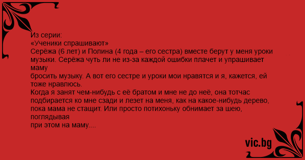 бросить музыку. А вот его сестре и уроки мои нравятся и я, кажется, ей
