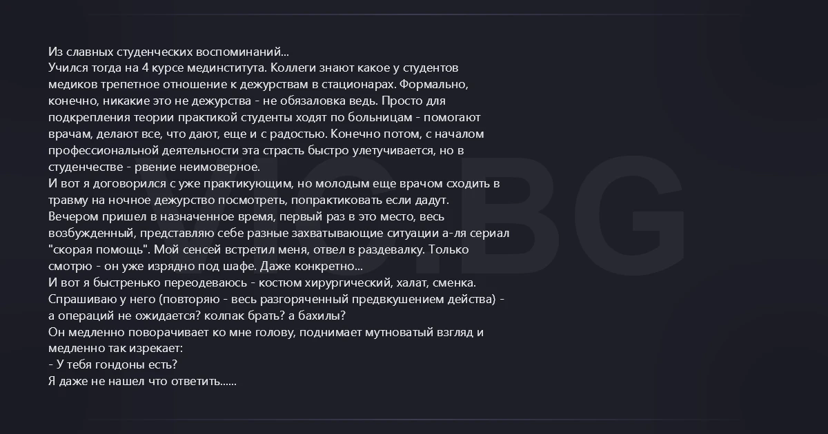 Учился тогда на 4 курсе мединститута. Коллеги знают какое у студентов