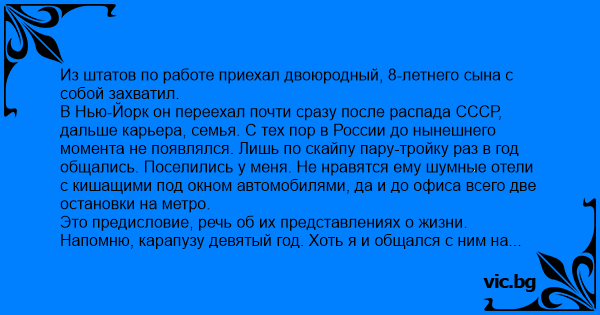 Из штатов по работе приехал двоюродный, 8-летнего сына с собой захватил.