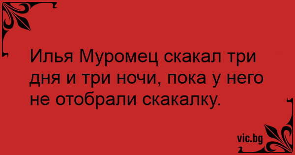 Илья Муромец скакал три дня и три ночи, пока у него не отобрали скакалку.