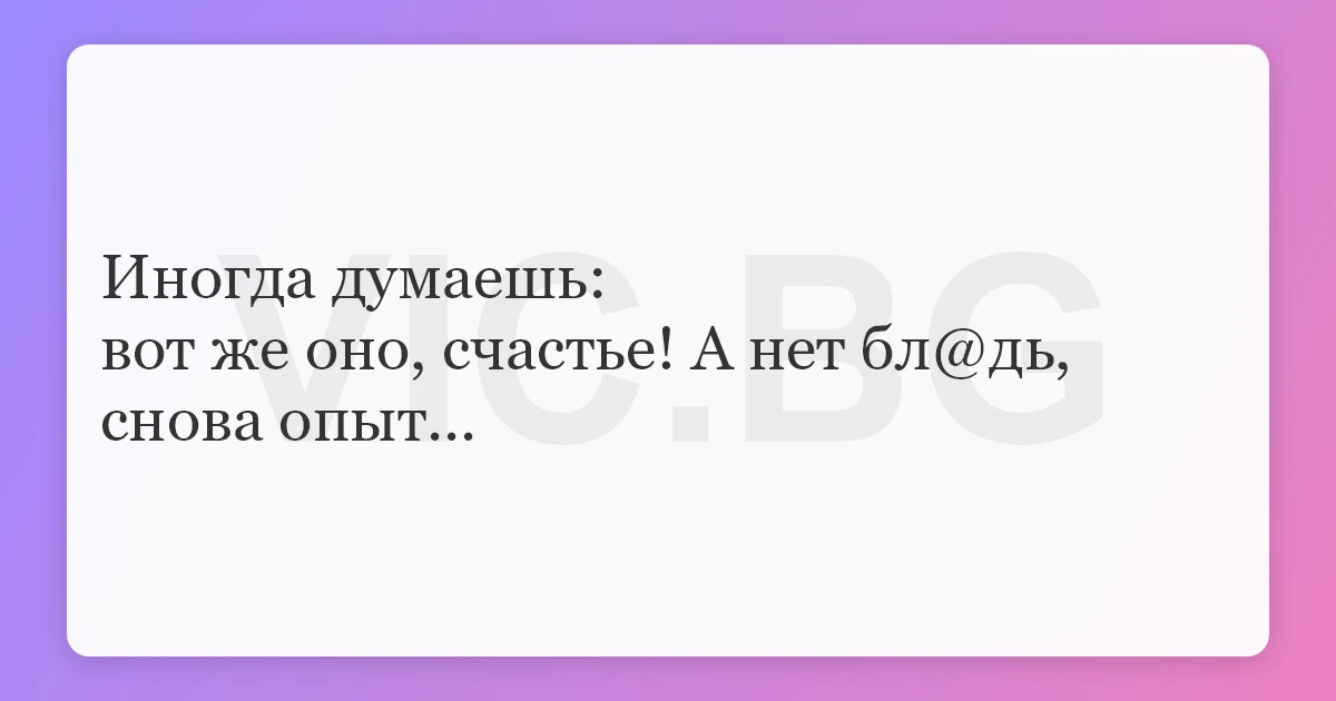 Иногда думаешь: вот же оно, счастье! А нет бл@дь, снова опыт...