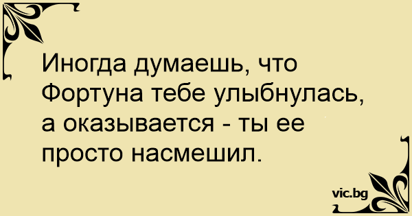 Иногда думаешь, что Фортуна тебе улыбнулась, а оказывается - ты ее просто насмешил.