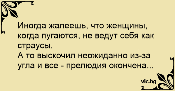 Иногда жалеешь, что женщины, когда пугаются, не ведут себя как страусы.