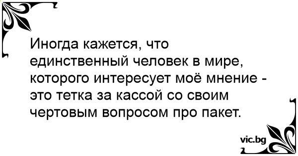 Иногда кажется, что единственный человек в мире, которого интересует моё мнение - это тетка за кассой со своим чертовым вопросом про пакет.
